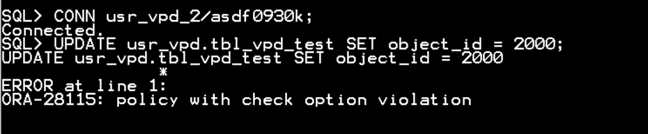 UPDATE usr_vpd.tbl_vpd_test SET object_id = 2000;