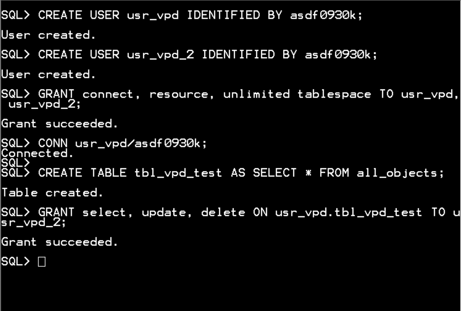 GRANT select, update, delete ON usr_vpd.tbl_vpd_test TO usr_vpd_2;