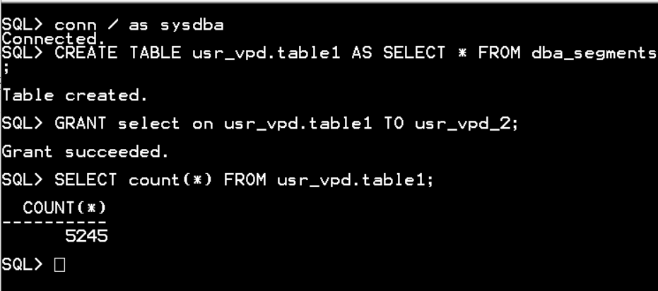 GRANT select on usr_vpd.table1 TO usr_vpd_2;