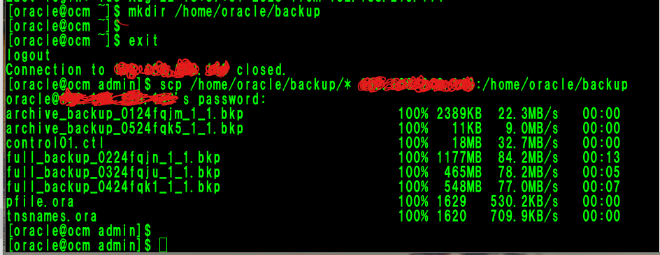 scp /home/oracle/backup/* <node2>:/home/oracle/backup
