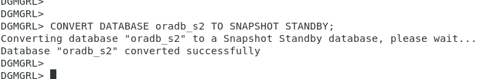 CONVERT DATABASE oradb_s2 TO SNAPSHOT STANDBY;