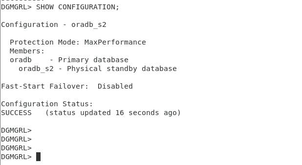 Q1. Convert physical standby database to snapshot standby database using DGMGRL (15min)