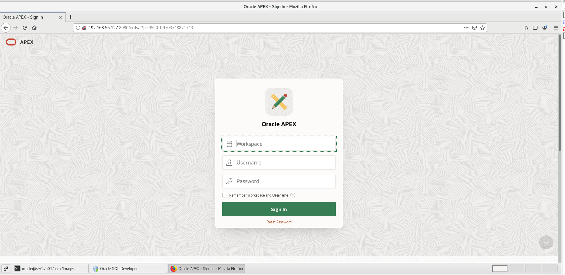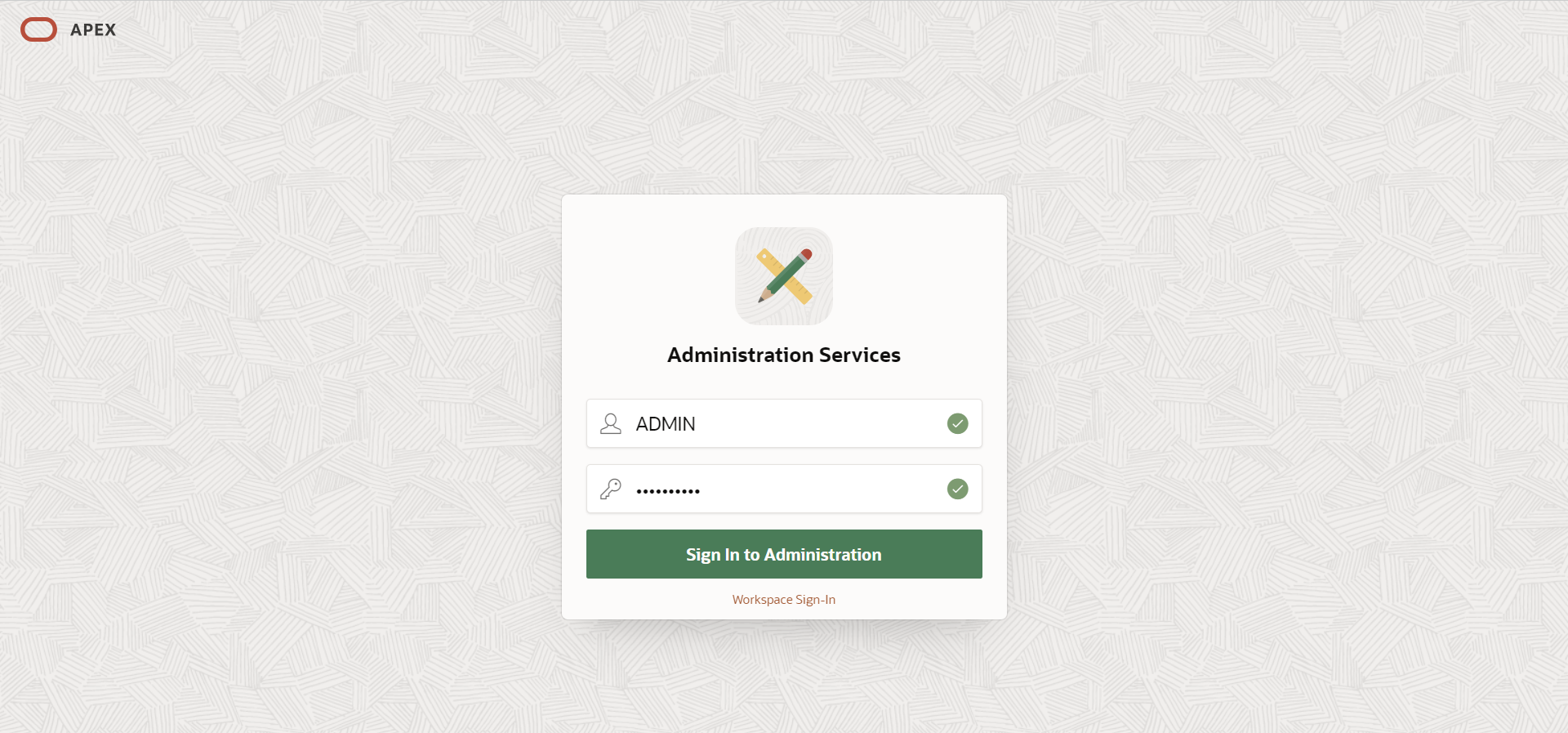APEX를 설치할 때 입력했던 ADMIN 유저의 비밀번호를 입력해 접속한다.