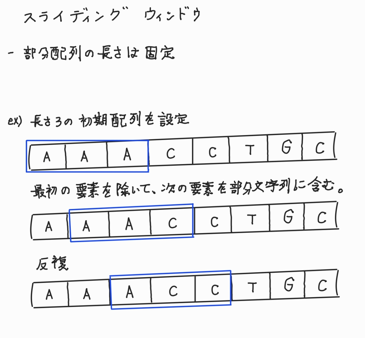 スライディングウィンドウアルゴリズムとは固定サイズのウィンドウが移動しながらウィンドウの内のデータを使って問題を解決するアルゴリズムです。