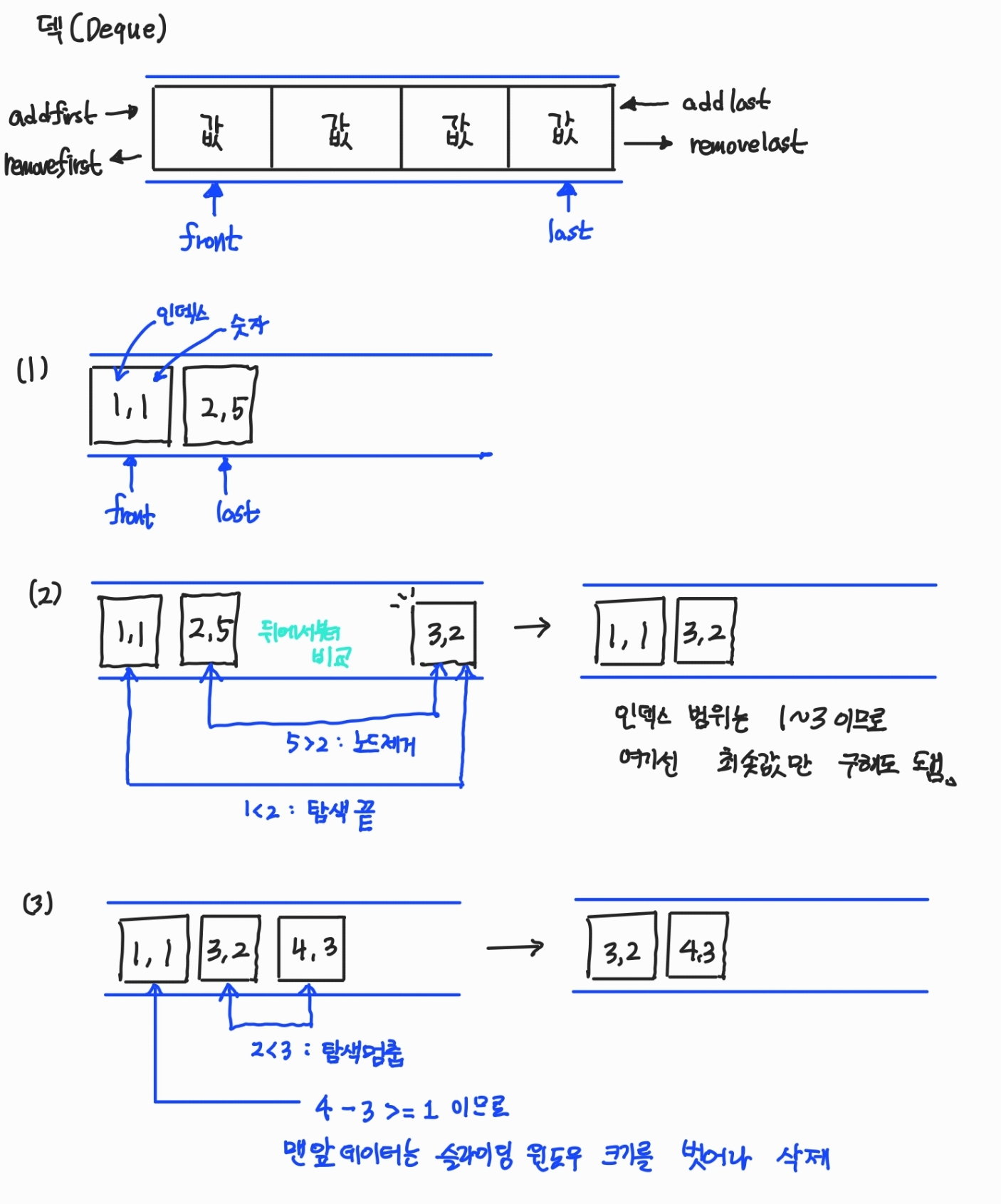 풀이: Java의 util 중 하나인 덱(deque)를 이용한다.