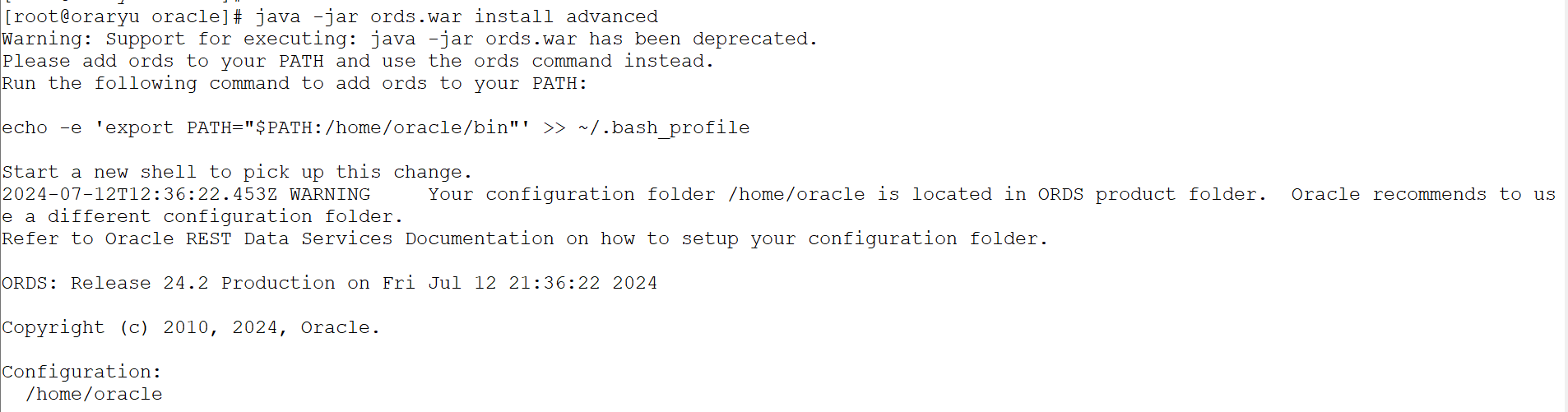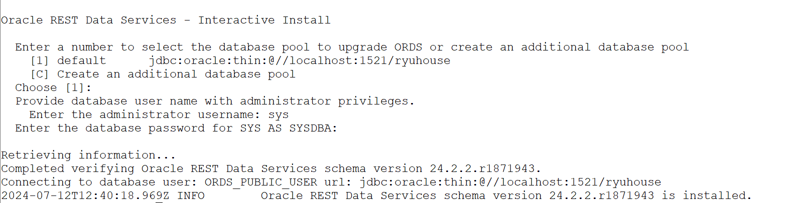 java -jar ords.war install
