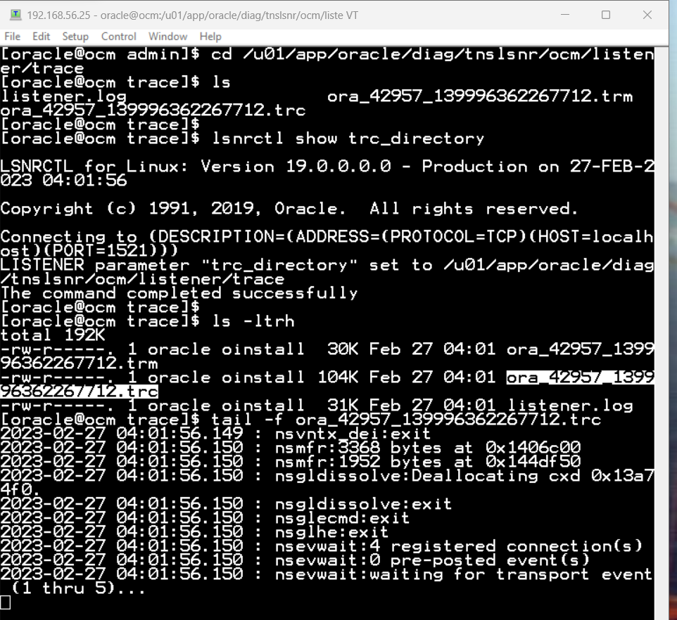 $ cd /u01/app/oracle/diag/tnslsnr/ocm/listener/trace