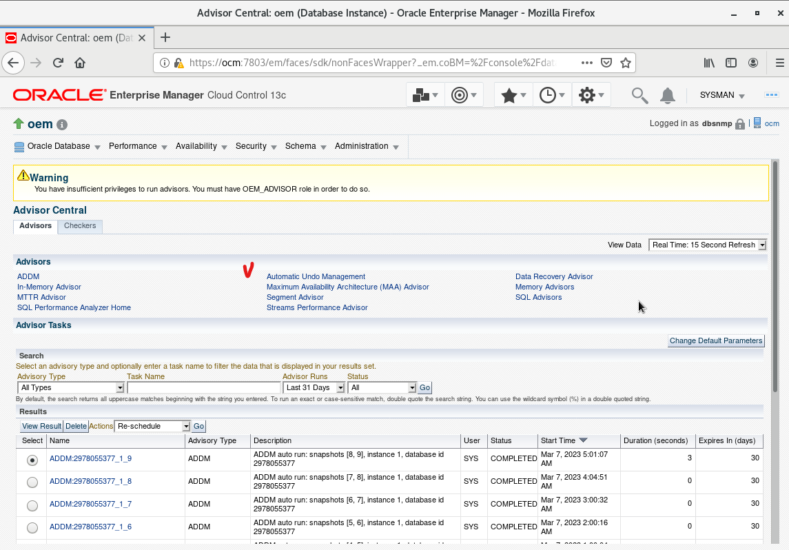 문제 2: Undo Advisor를 이용하여 undo size를 변경하라. (5분)