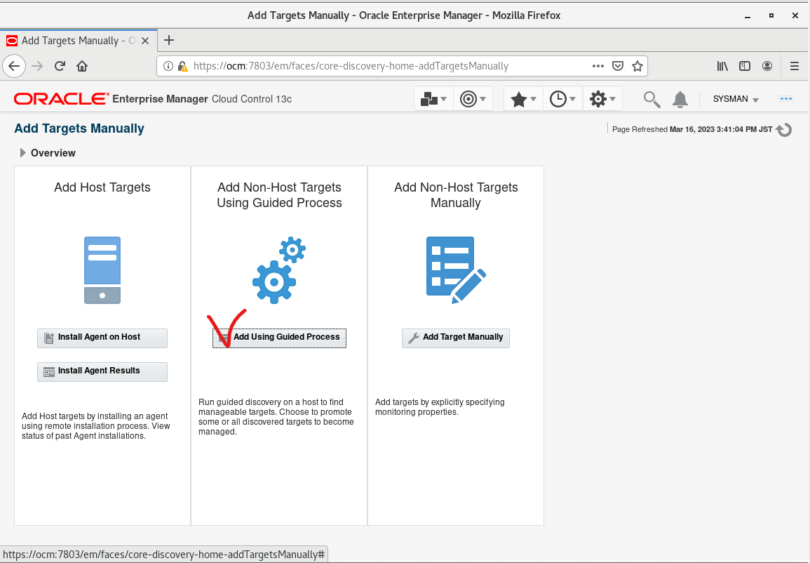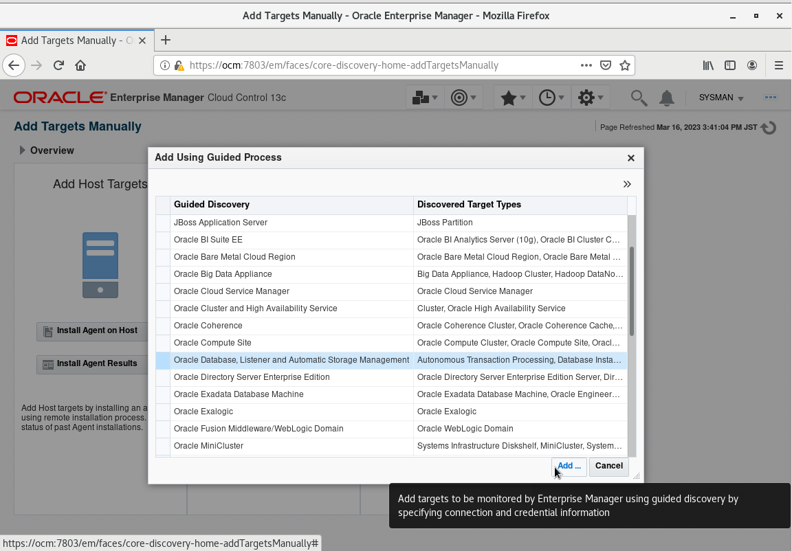3. Node2의 데이터베이스를 OEM Cloud Control에 추가한다.