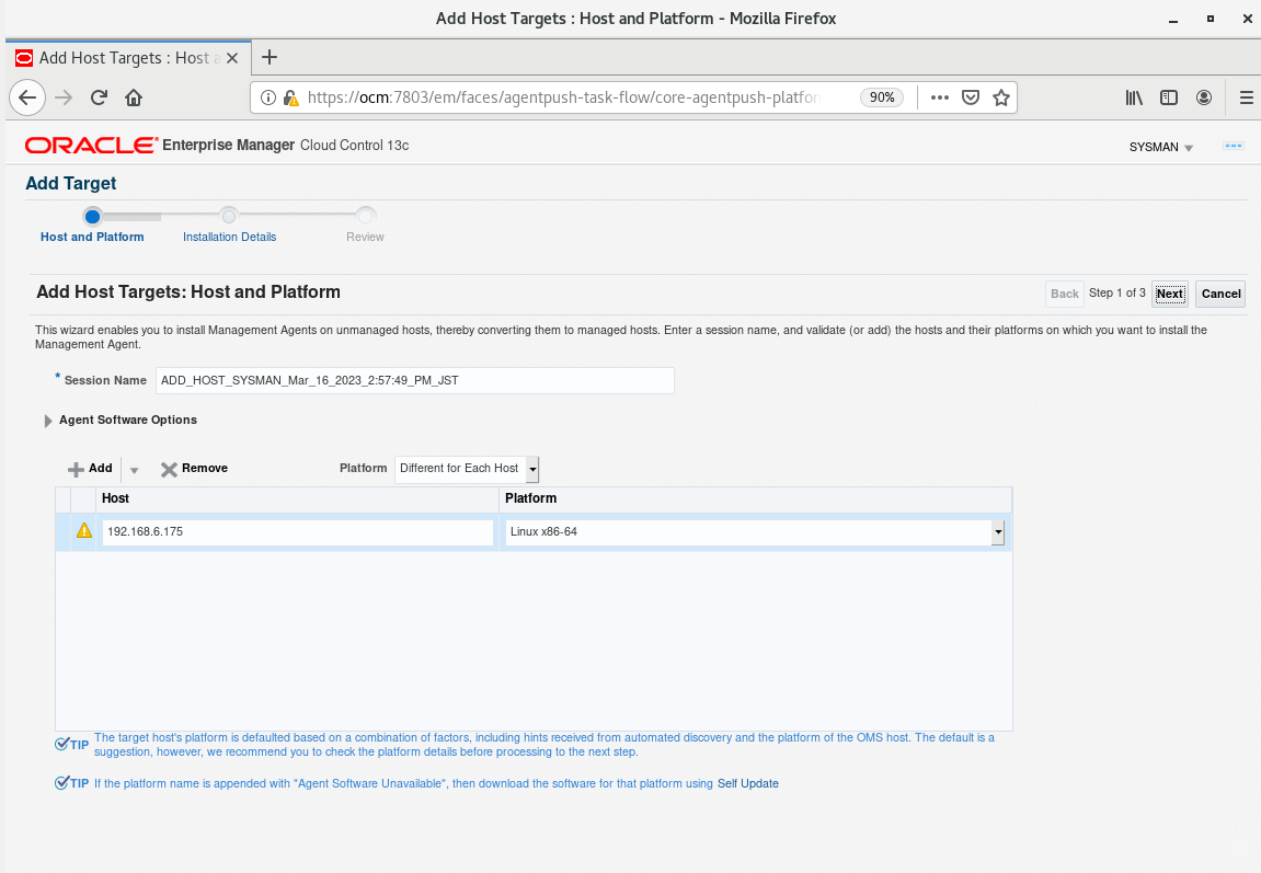 /* 다른 서버의 resource를 OEM의 agent로 등록할 수 있다. 그러기 위해서는 OEM 서버와 agent 대상 서버가 연결이 되어 있는 상태여야 한다. */