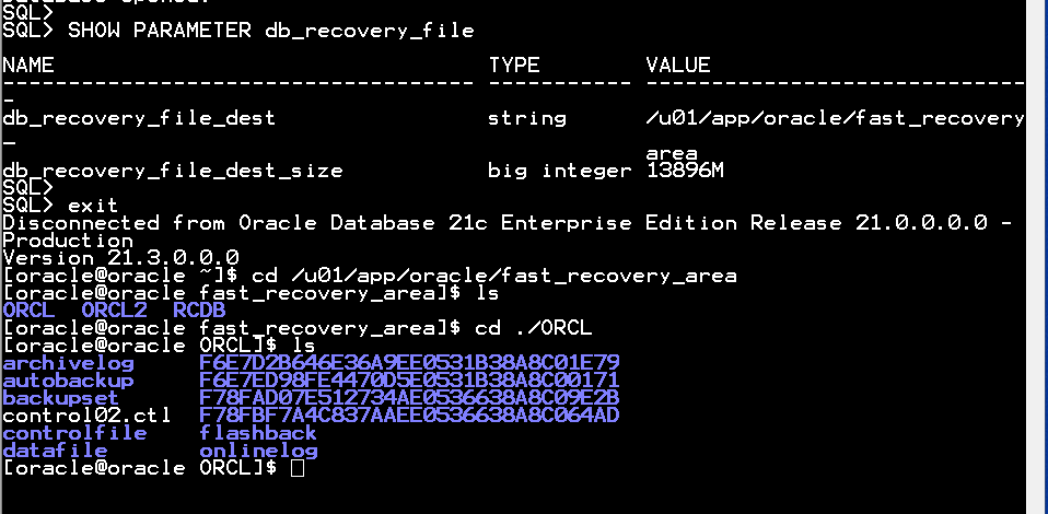 $ cd /u01/app/oracle/fast_recovery_area/ORCL/