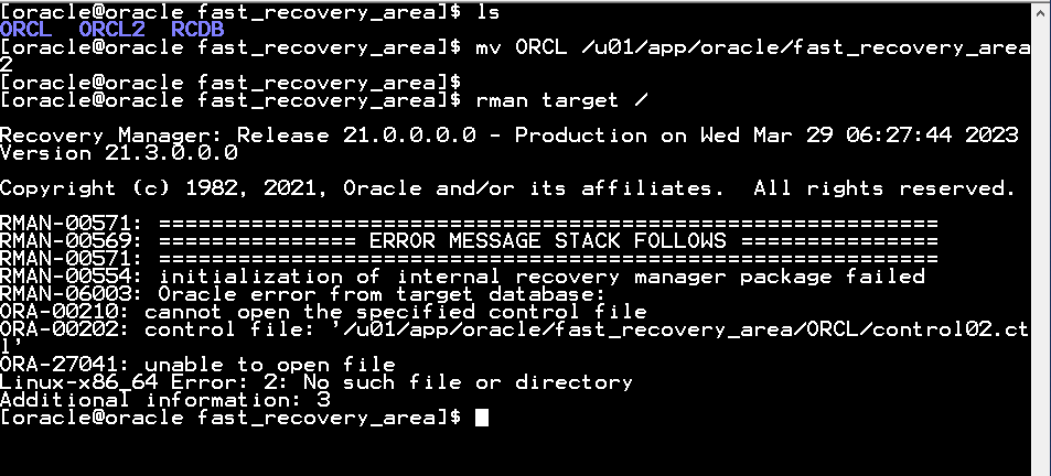 $ mv ORCL /u01/app/oracle/fast_recovery_area2