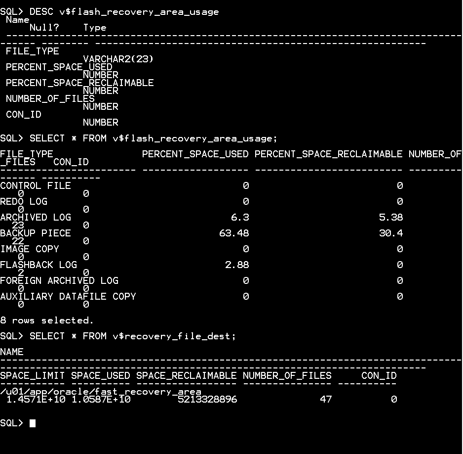 FROM v$recovery_file_dest;