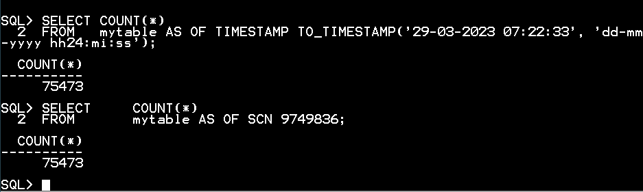 FROM mytable AS OF TIMESTAMP TO_TIMESTAMP('29-03-2023 07:22:33', 'dd-mm-yyyy hh24:mi:ss');