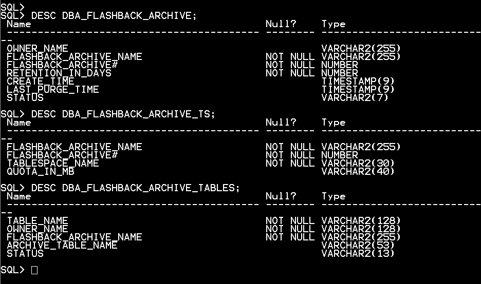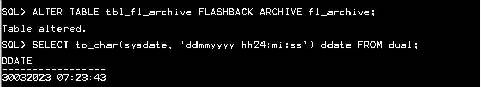 ALTER TABLE tbl_fl_archive FLASHBACK ARCHIVE fl_archive;