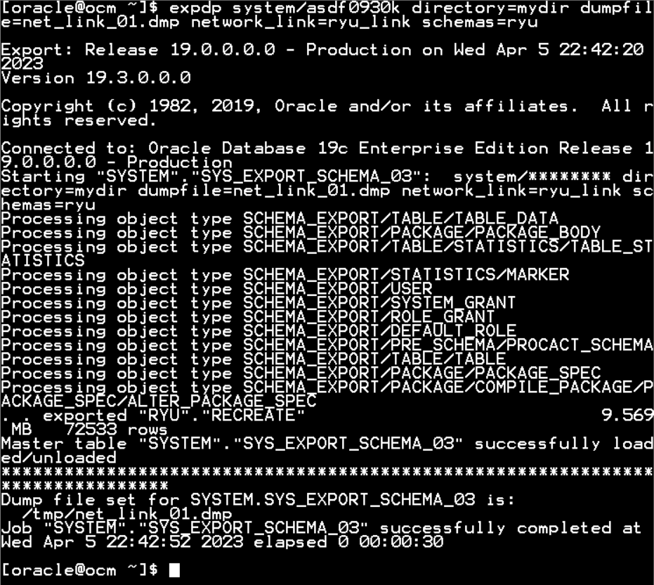 $ expdp system/asdf0930k directory=mydir dumpfile=net_link_01.dmp network_link=ryu_link schemas=ryu