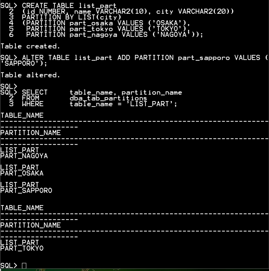 ALTER TABLE list_part ADD PARTITION part_sapporo VALUES ('SAPPORO');
