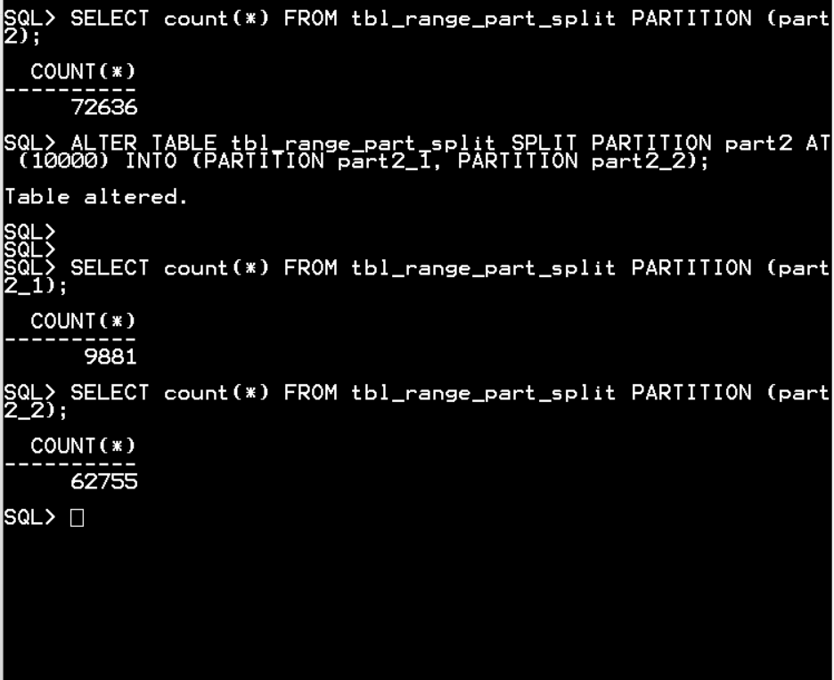 ALTER TABLE tbl_range_part_split SPLIT PARTITION part2 AT (10000) INTO (PARTITION part2_1, PARTITION part2_2);