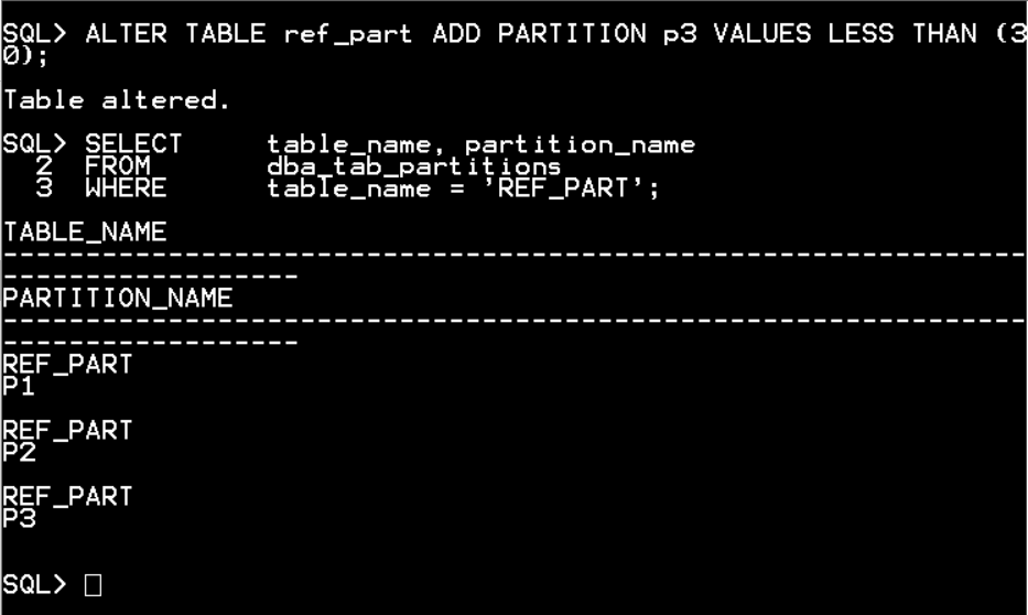 ALTER TABLE ref_part ADD PARTITION p3 VALUES LESS THAN (30);
