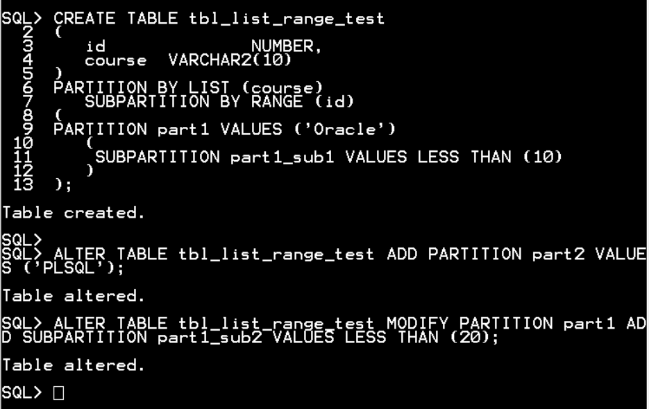 ALTER TABLE tbl_list_range_test ADD PARTITION part2 VALUES ('PLSQL');