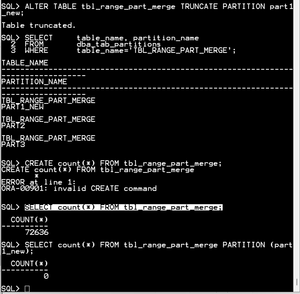 ALTER TABLE tbl_range_part_merge TRUNCATE PARTITION part1_new;