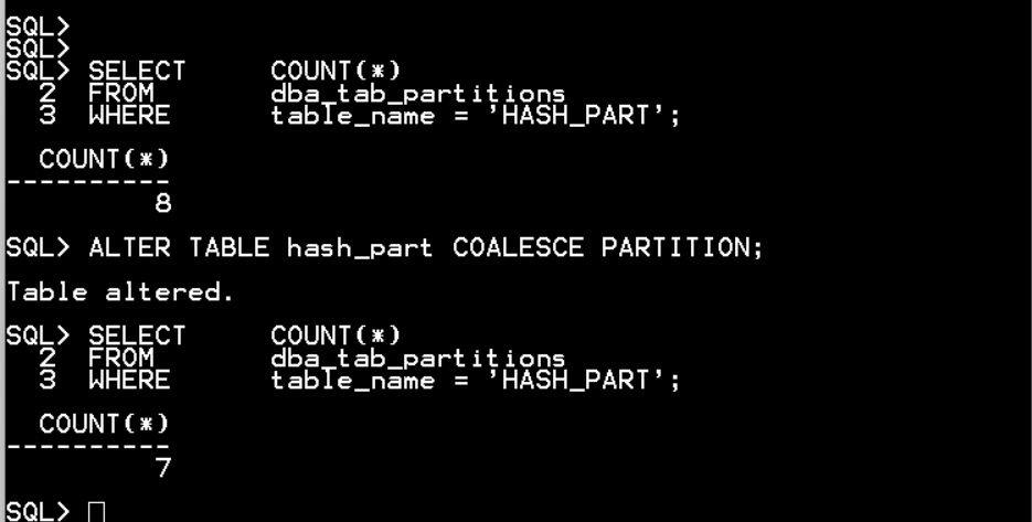 ALTER TABLE hash_part COALESCE PARTITION;