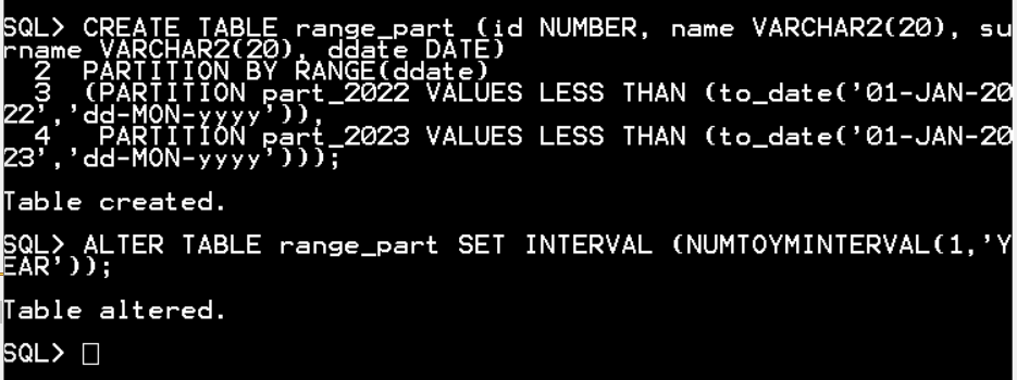 ALTER TABLE range_part SET INTERVAL (NUMTOYMINTERVAL(1,'YEAR'));