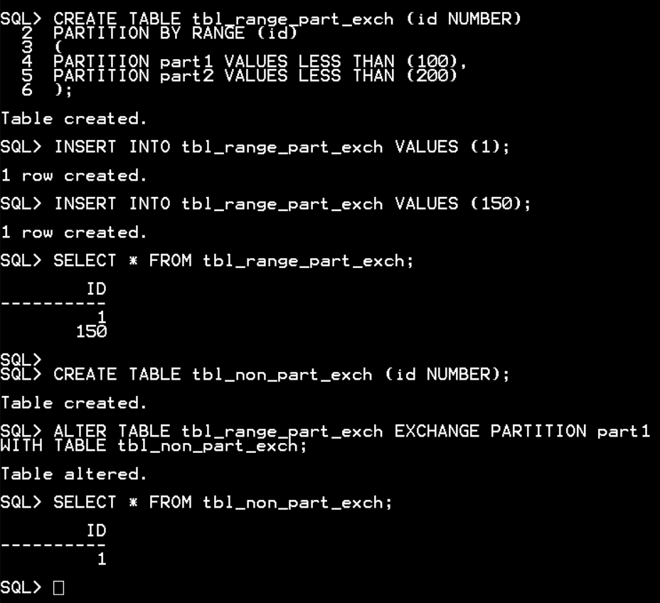 CREATE TABLE tbl_range_part_exch (id NUMBER)