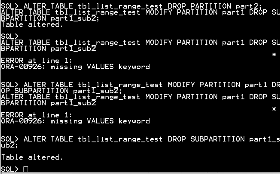ALTER TABLE tbl_list_range_test DROP SUBPARTITION part1_sub2;
