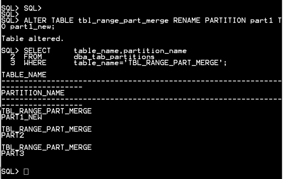 ALTER TABLE tbl_range_part_merge RENAME PARTITION part1 TO part1_new;