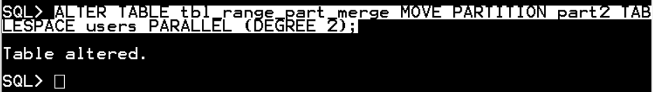 ALTER TABLE tbl_range_part_merge MOVE PARTITION part2 TABLESPACE users PARALLEL (DEGREE 2);